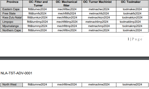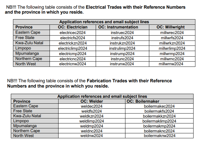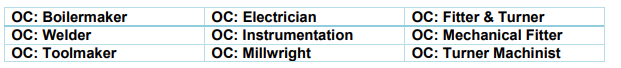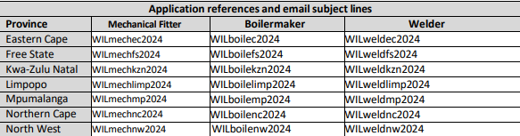 NB!!! The following table consists of the (WIL) Mechanical Fitter, Boilermaker and Welding with