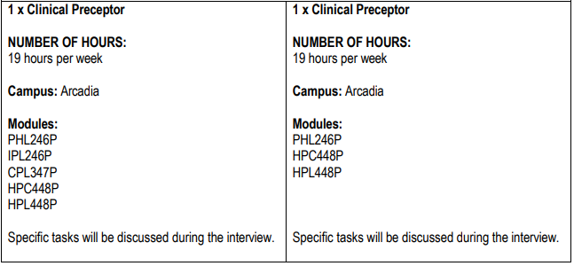 Clinical preceptors for the BPharm programme – TWO (w) POSTS available (G123)