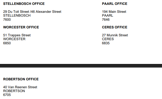 STELLENBOSCH OFFICE